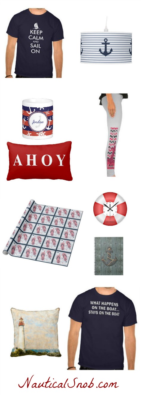 Today I’ve put together a collage of nautical nick nacks from Zazzle including home items and t-shirts. They have a boatload of nautical items. You can even personalized them.  For the next 2 days save 20% off your order via code MAKEWITHLOVE. Ends 2/5.